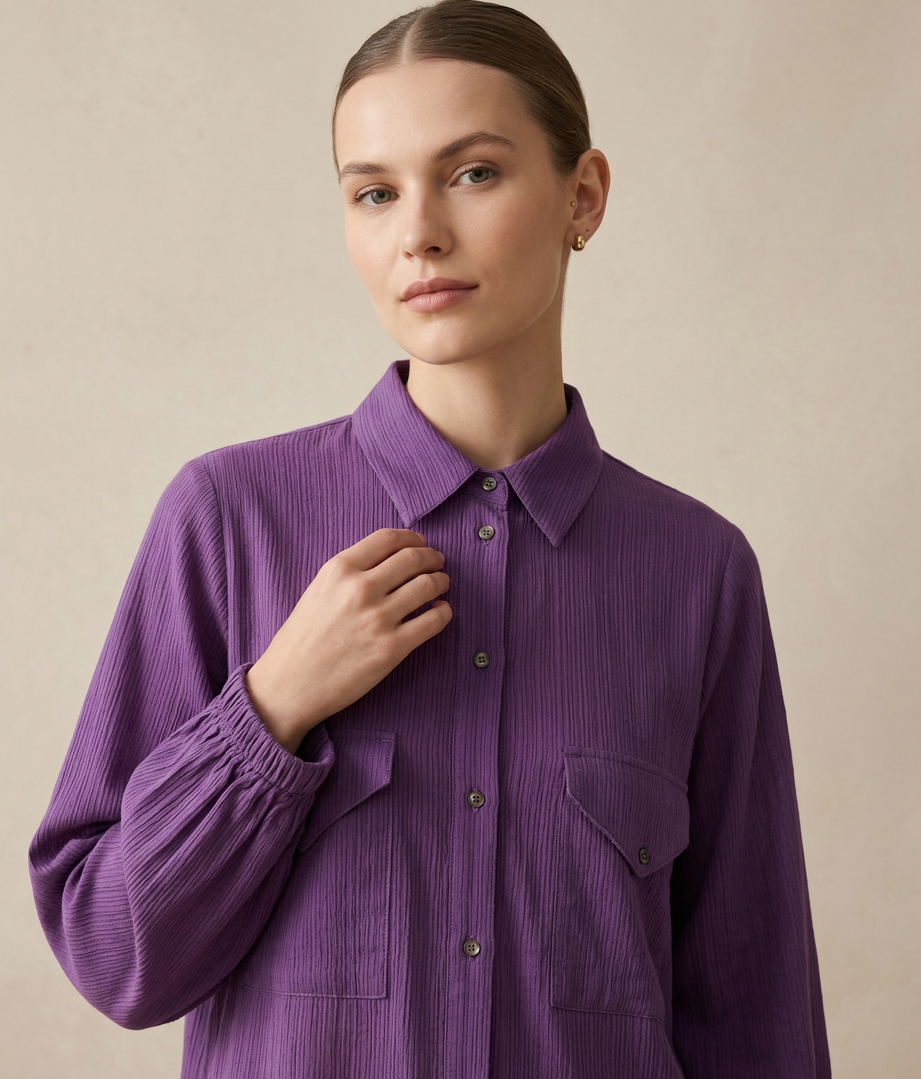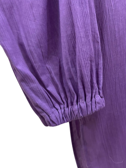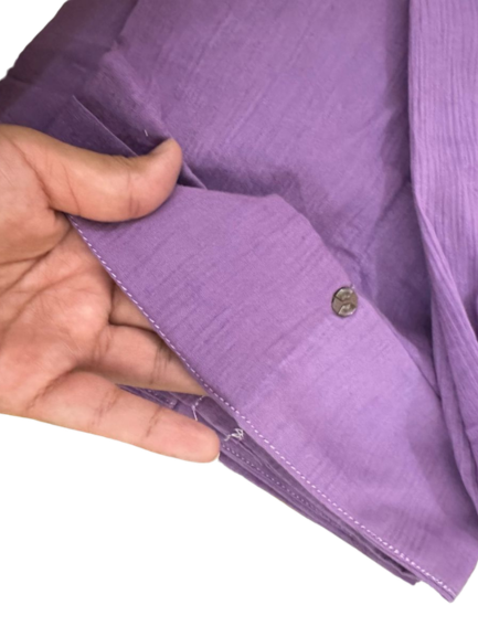Key Features: Premium cotton crush fabric, lightweight & breathable, lavender color, 2-piece outfit, relaxed fit, minimal design, easy to maintain.